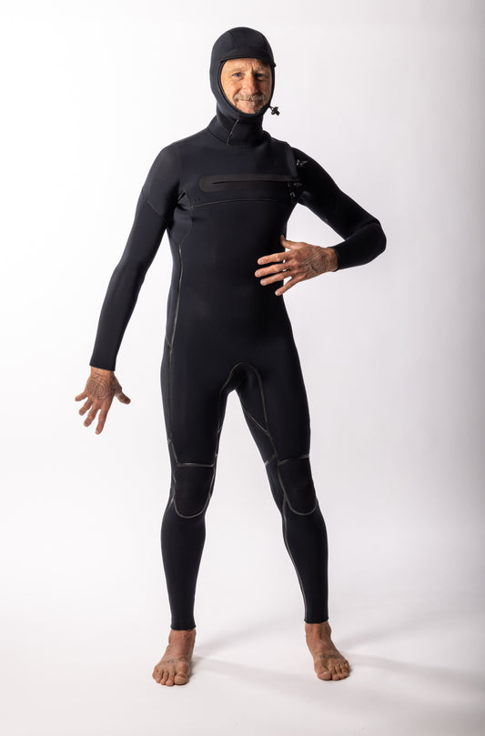 Colby + Yamamoto - 5/4mm Hooded Chest Zip Fullsuit - ALL BLACK