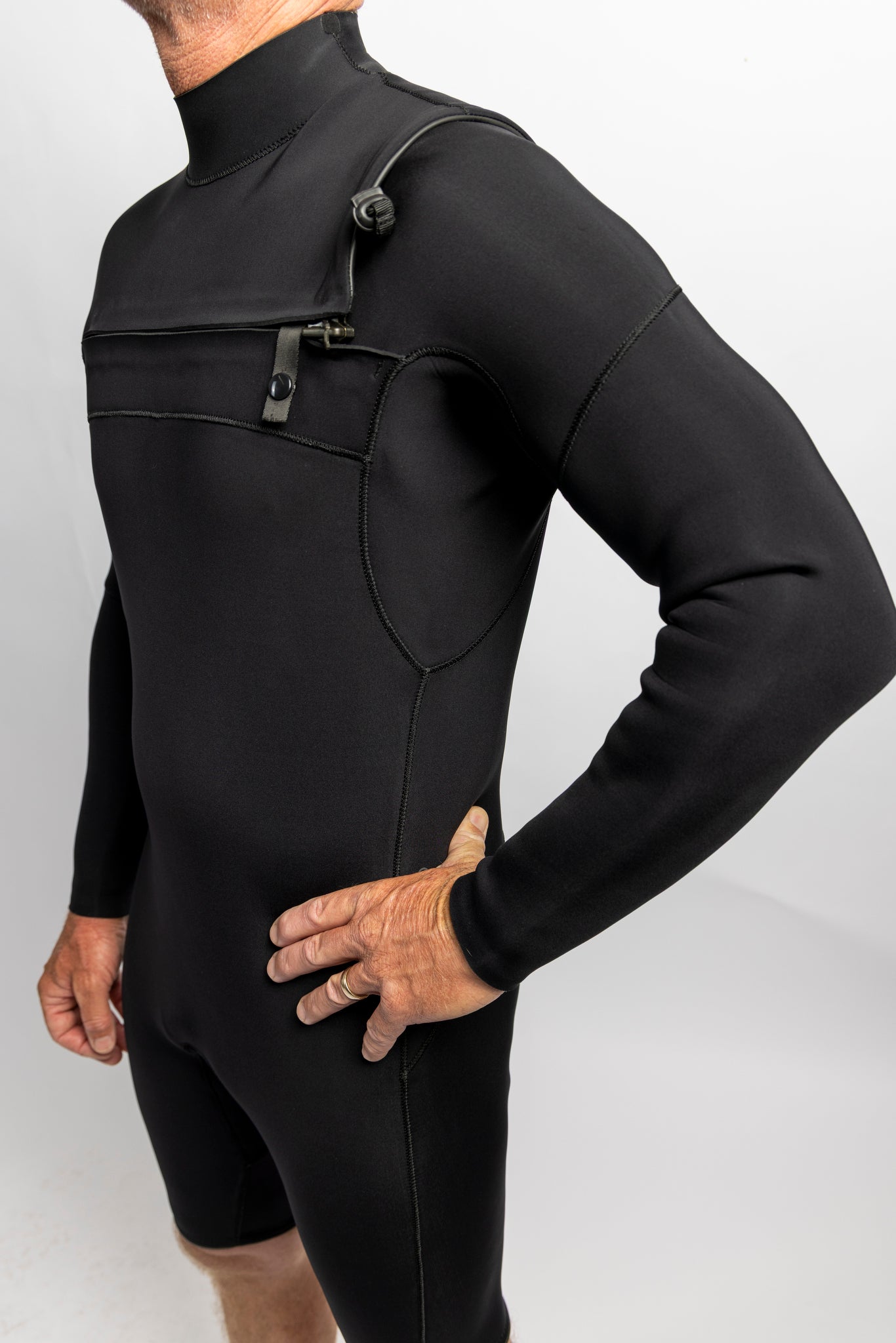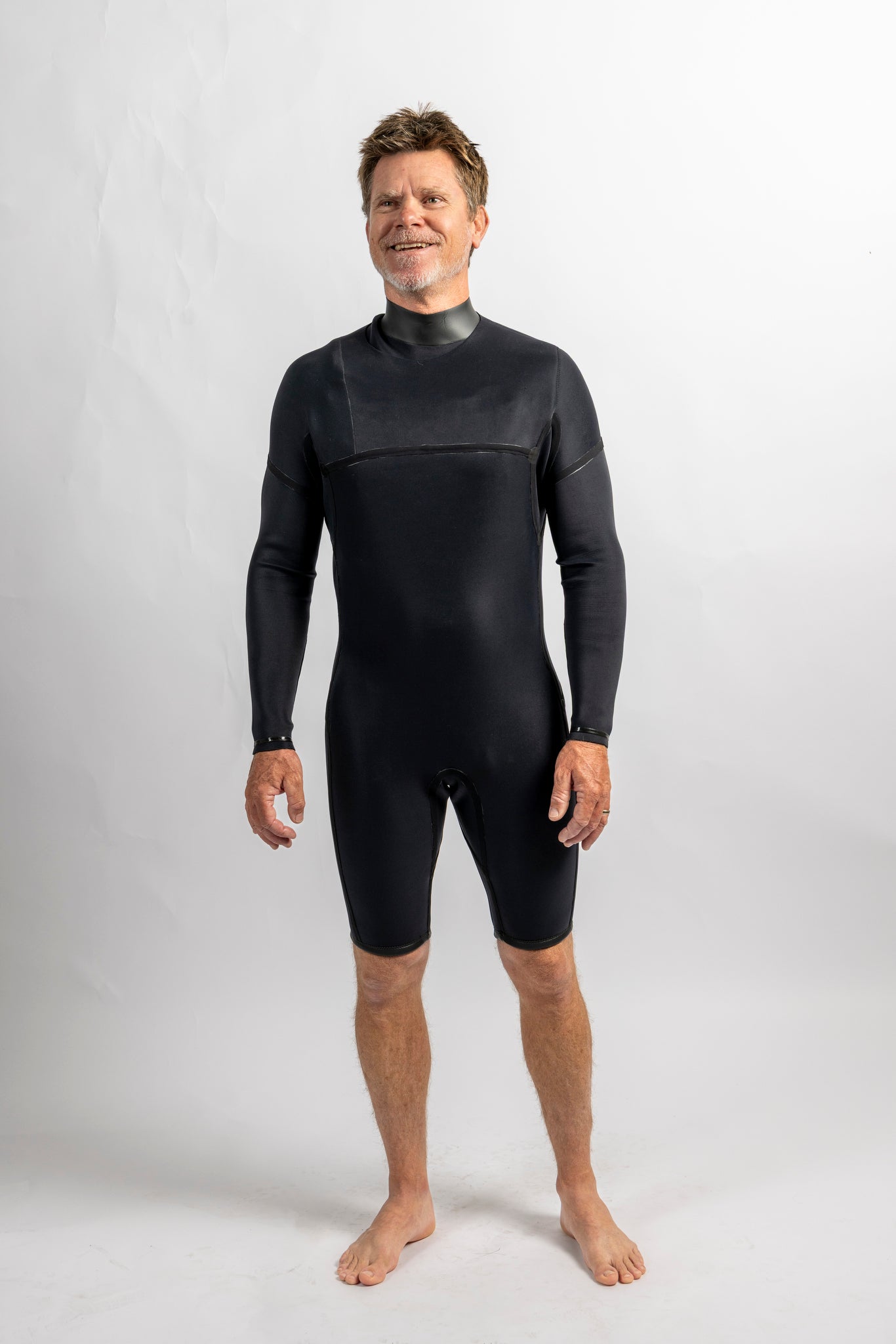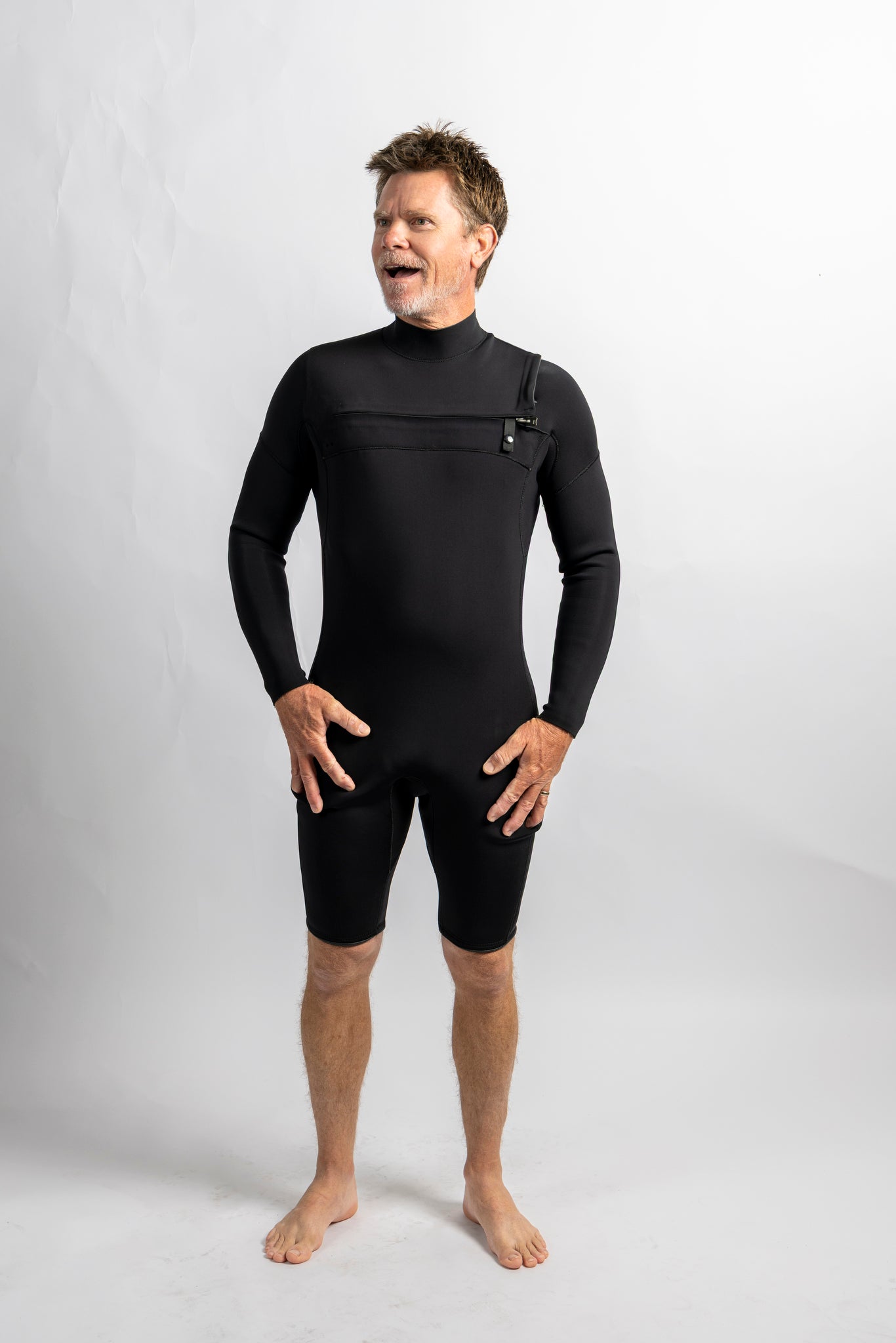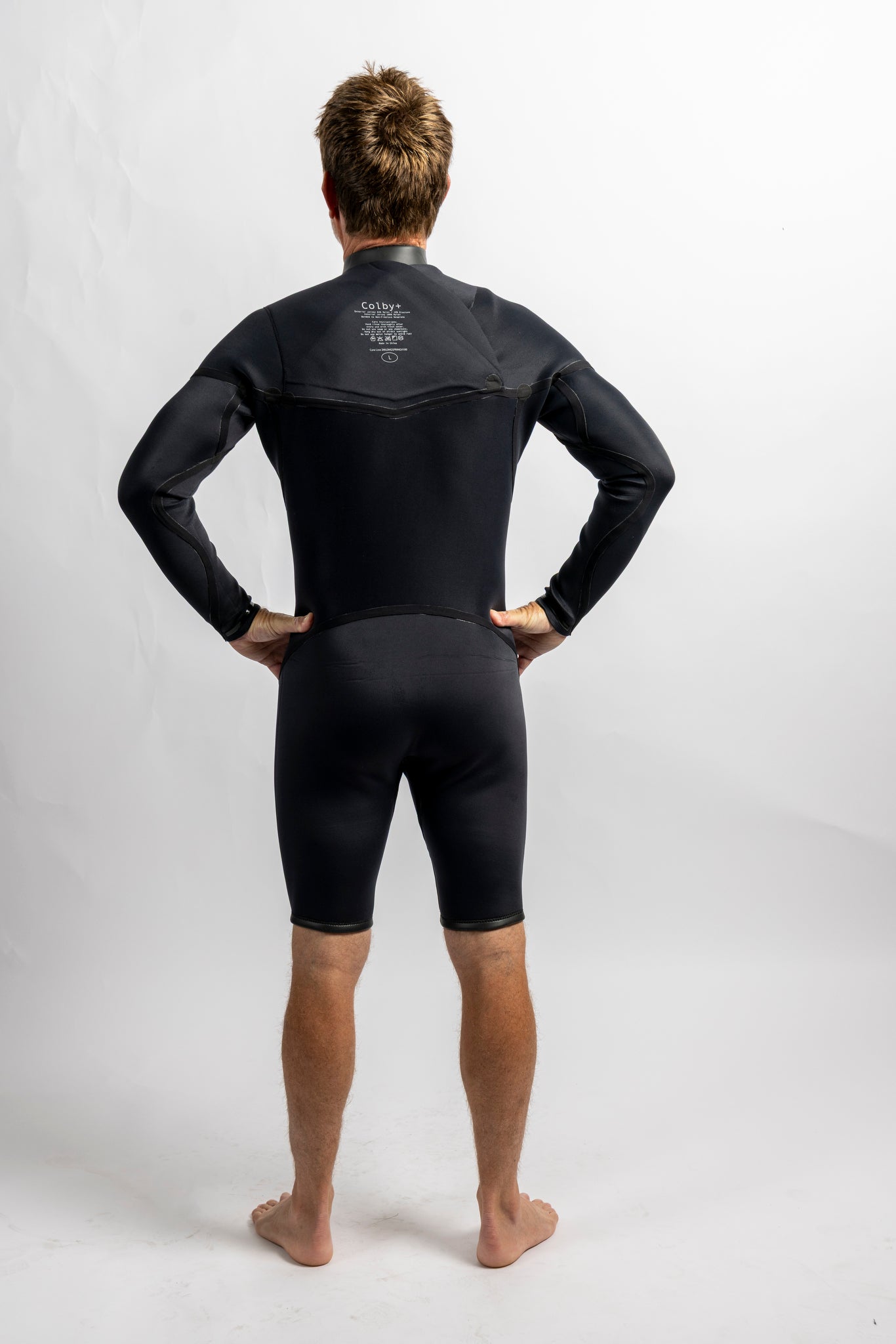 If you have any questions about fit, please hit us up - we'd love to help you get the right size on your first try! Please note, the fit on our clearance inventory is slimmer and slightly longer...And you'll find the clearance suits to be less flexible and a bit tougher to get on and off. The Colby + suits have a more generous opening, are noticeably lighter and more flexible, BUT are slightly shorter in the torso, arms and legs. So, if you're in between sizes, we recommend going with the "taller" size for the Colby + suits.
