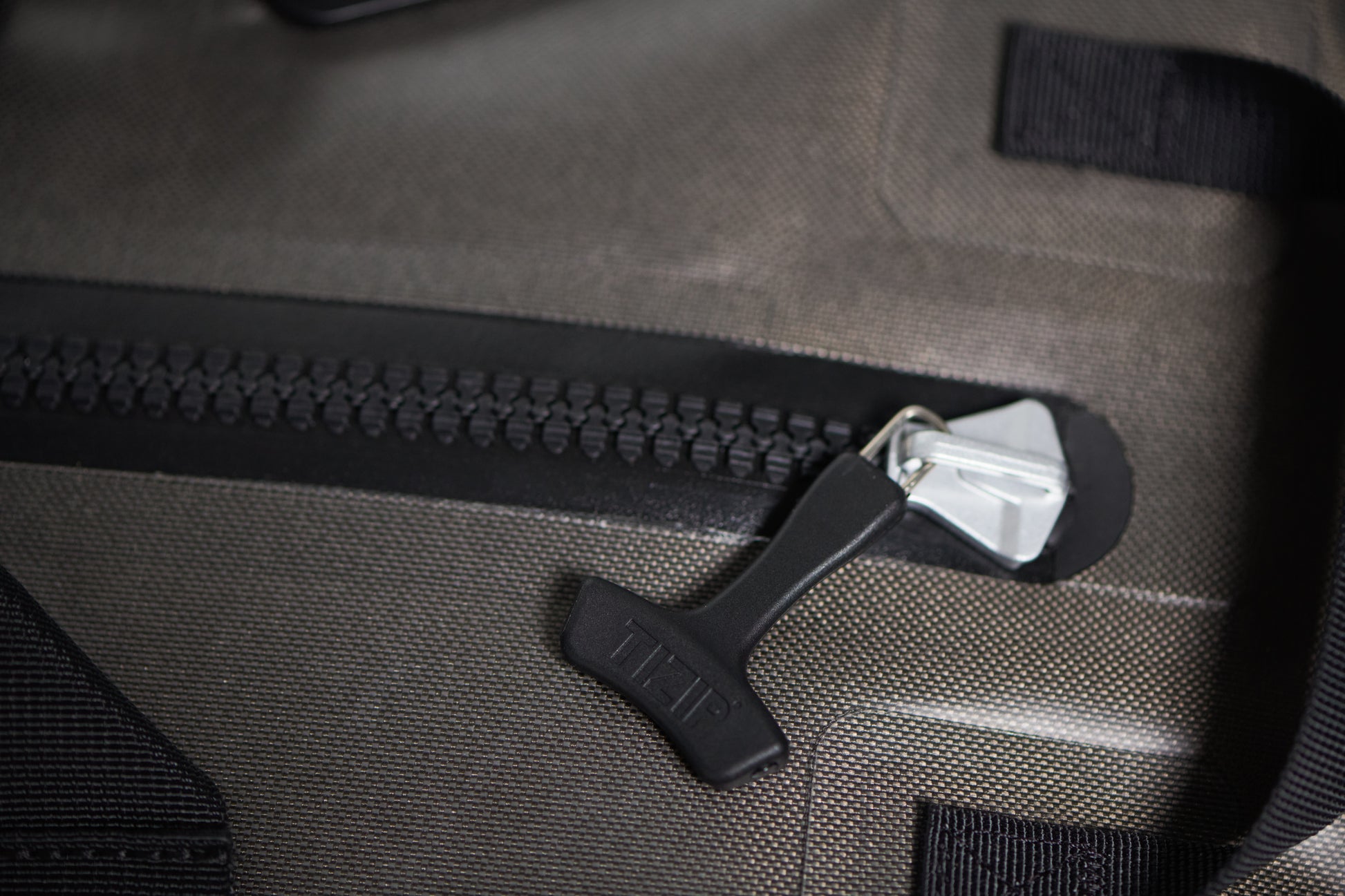 Featuring a German-made TiZip zipper, this bag is so water and airtight, that it can also be used as a flotation device.