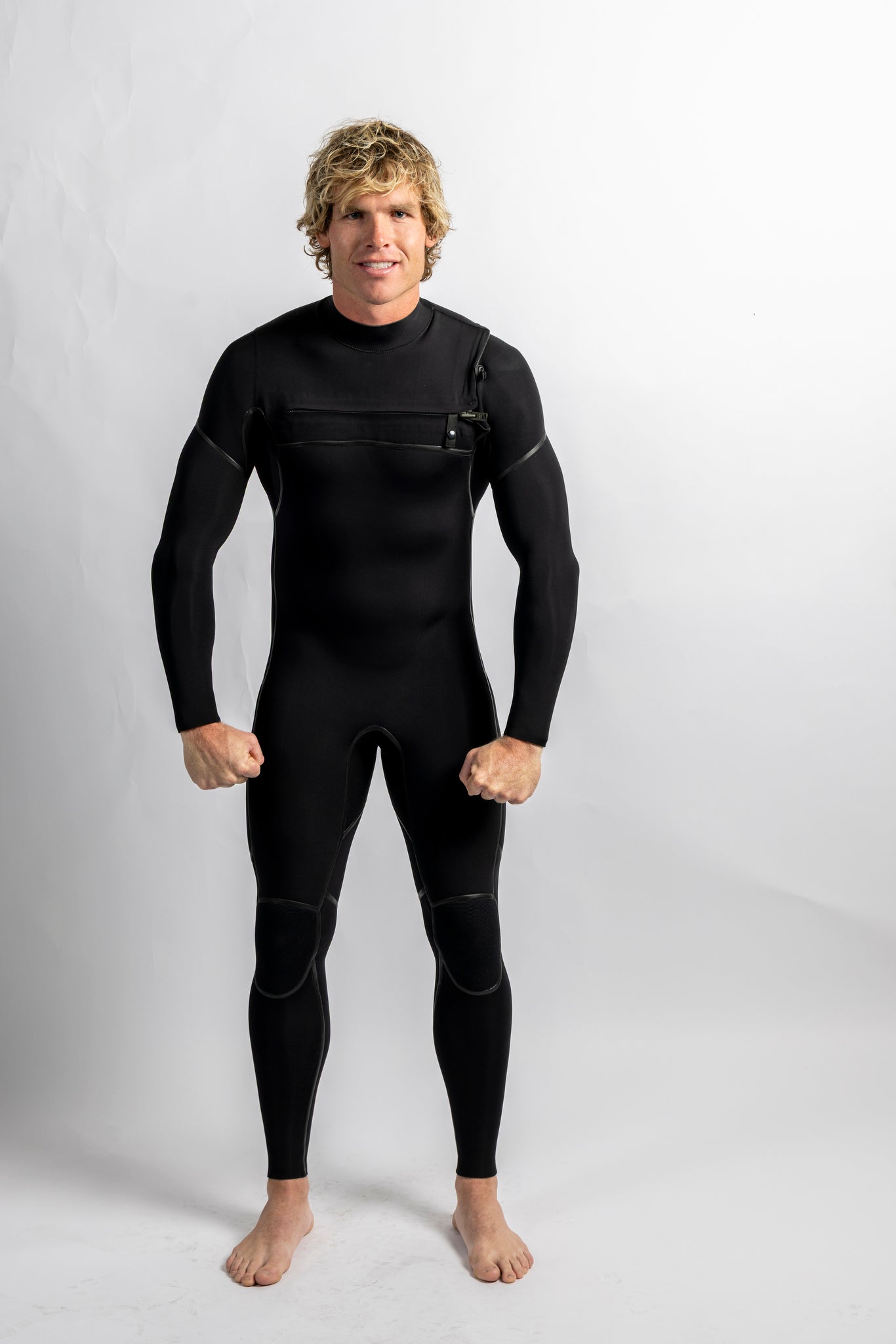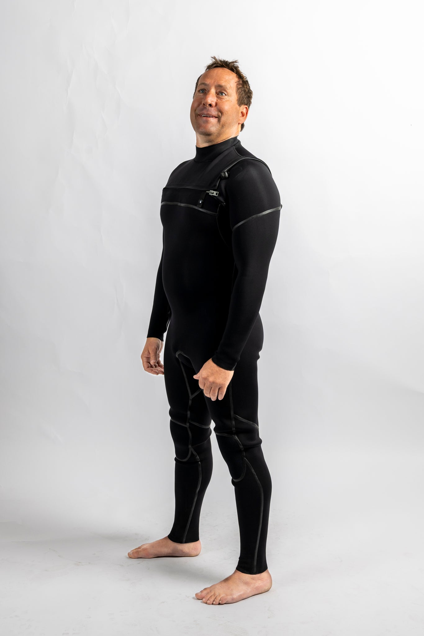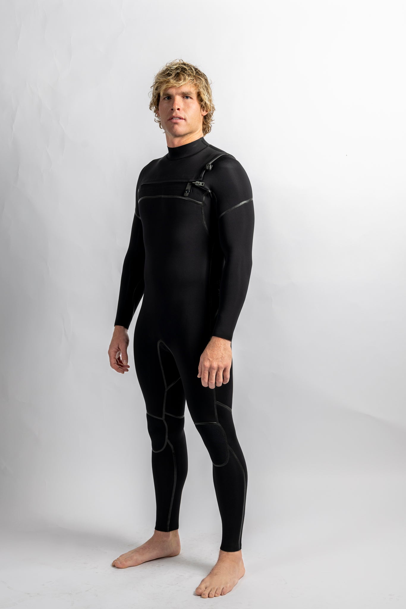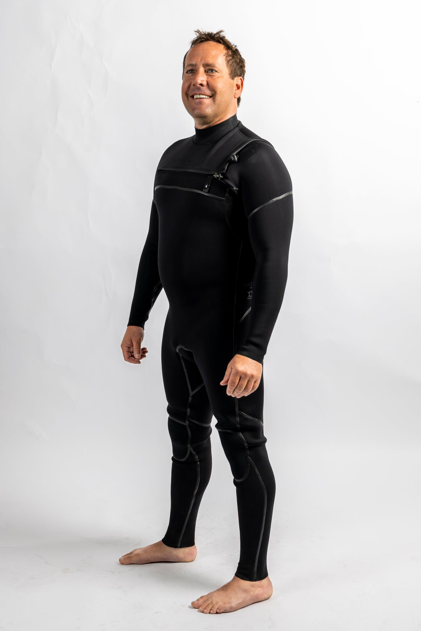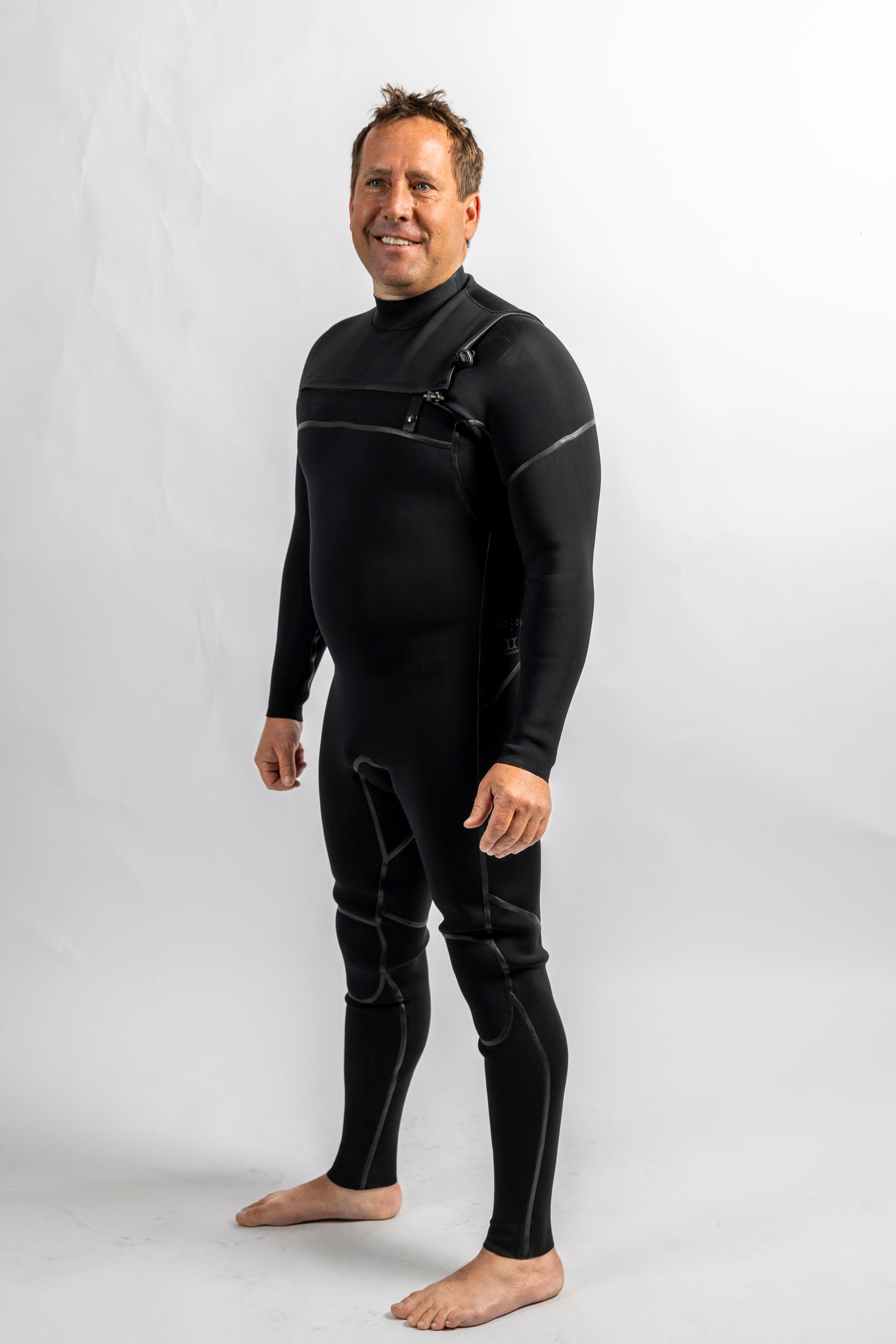 Construction: 3/2mm Fullsuit in a classic chest zip design, featuring fast-drying thermal lining and a very tough YKK zipper with a metal zip pull. This is a fantastic suit built by hand, featuring triple glued and blindstitched construction with liquid sealed exterior seams.